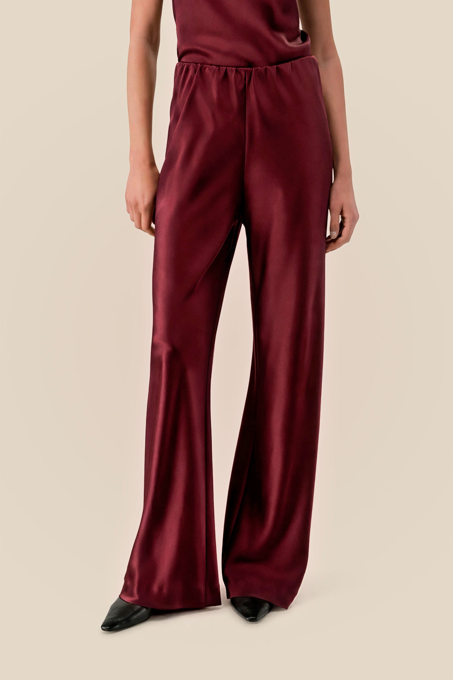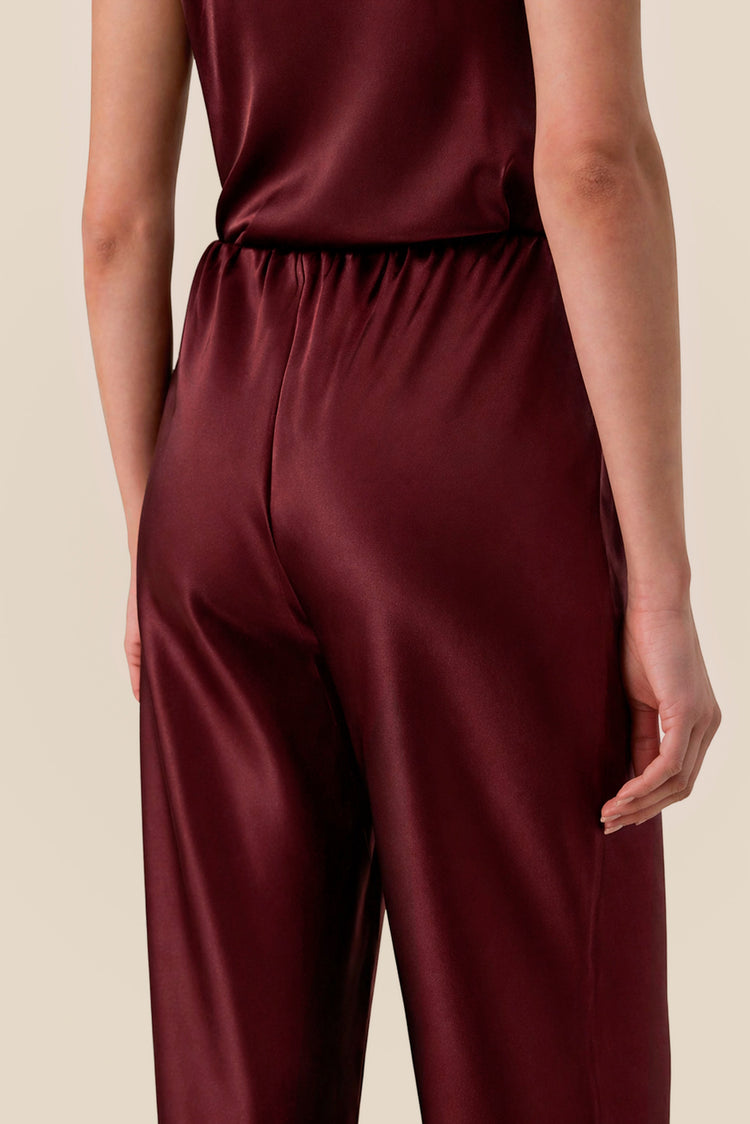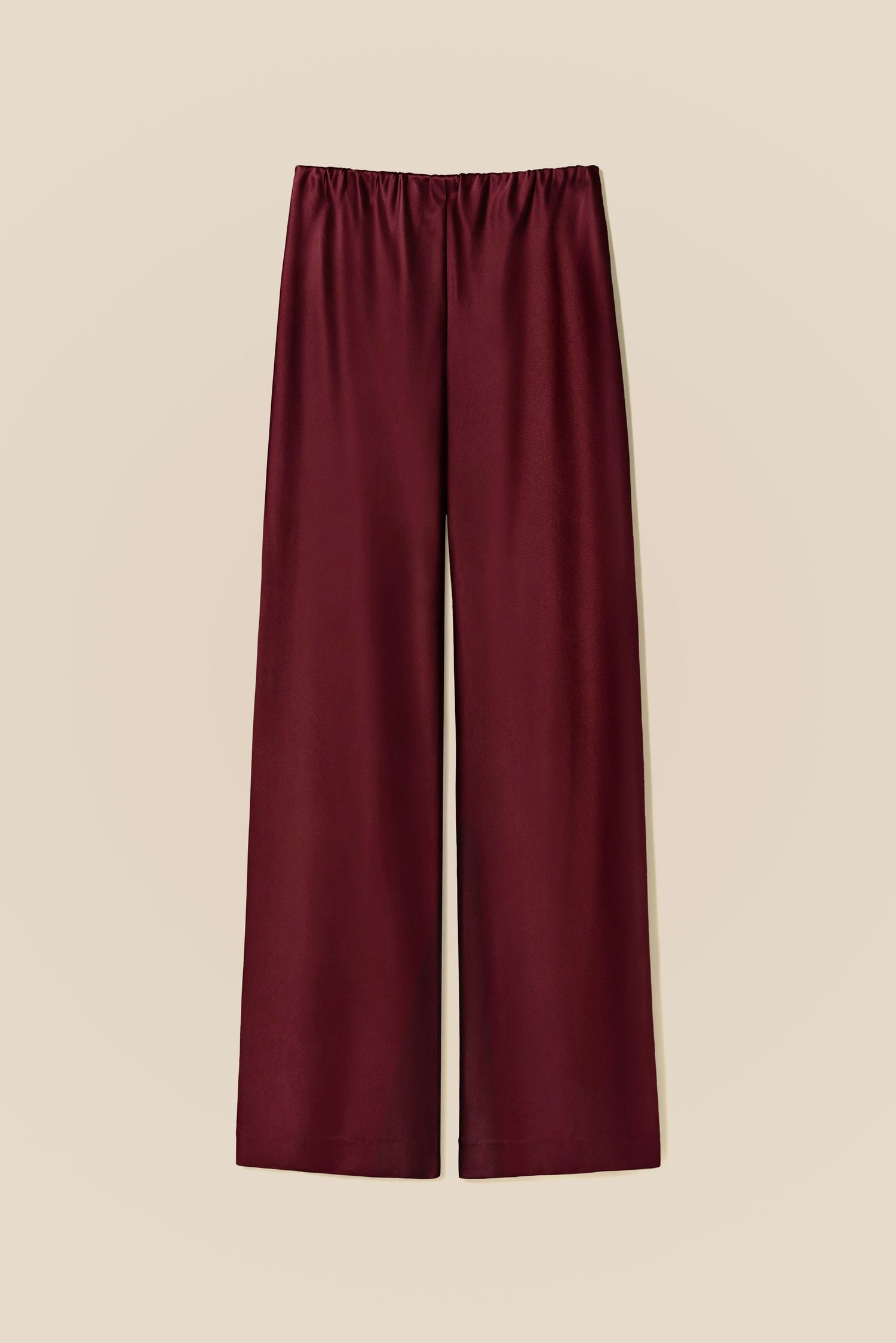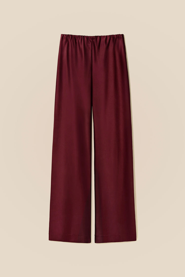 Sharp lines, soft fabric and just enough sheen to make it interesting. Satin silk falls cleanly through a straight-leg cut, creating a silhouette that feels polished without any effort. An elasticated waistband keeps it comfortable enough for all day, refined enough for any occasion.